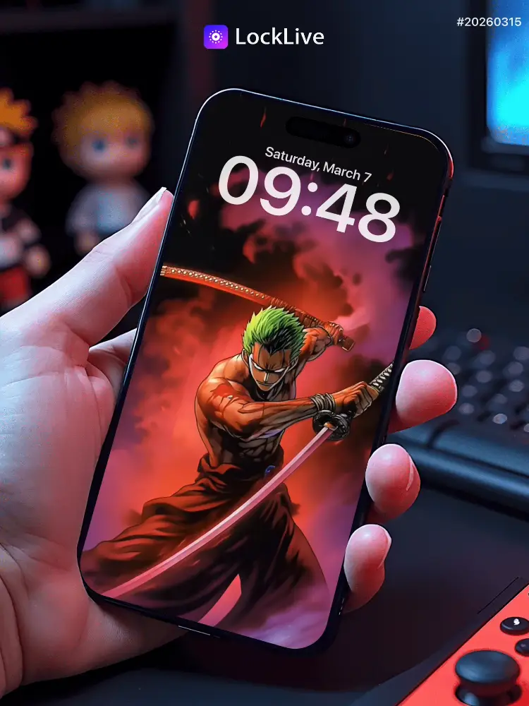 No.20260315 One Piece Roronoa Zoro in Pink Smoke Live Wallpaper