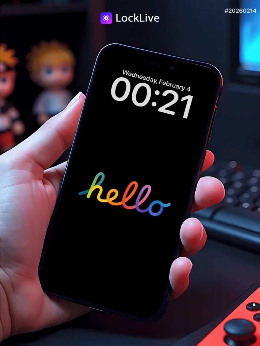 No.20260214 एप्पल हैलो कर्सिव एनीमेशन लाइव वॉलपेपर